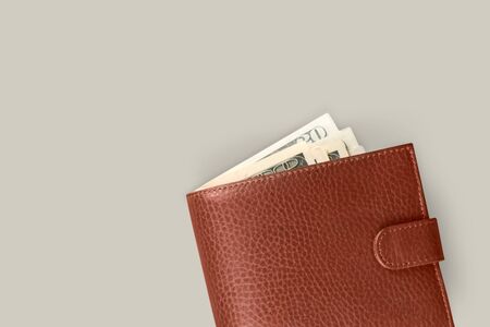 Dollars in wallet isolated on white background close up