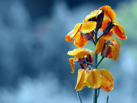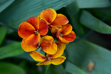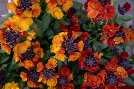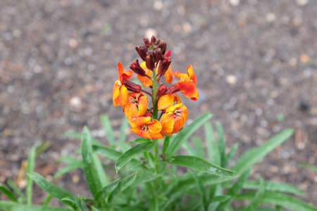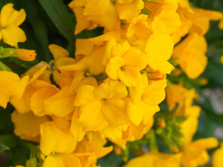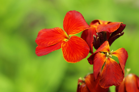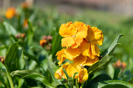 Wallflower, Cheiranthus cheiri or Erysimum cheiri. Lovely spring flowers with orange shade of petals