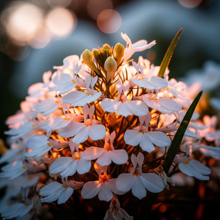 Beautiful white flowers in the garden at sunset. Selective focus.