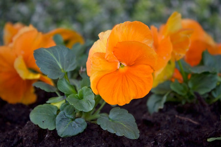 orange flowers in garden flowerbed. Vintage nature outdoor autumn photo