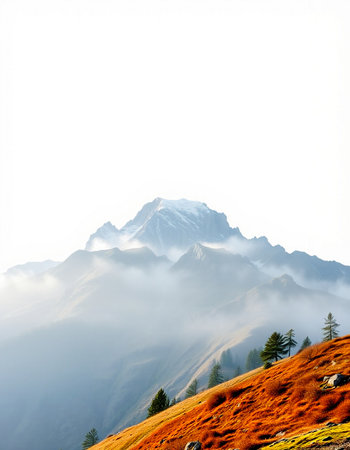 Breathtaking mountain landscape featuring a towering peak, vibrant greenery, rocky formations, and a dramatic sky filled with fluffy clouds. Perfect for nature lovers.