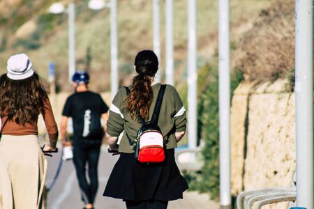 Tel Aviv Israel December 22, 2019 View of unidentified people walking on Herbert Samuel Promenade in Tel Aviv in the afternoon