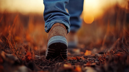 close-up of hiking boots on a trail at sunset