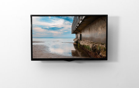 Mocap picture on white wall, poster, picture, photo. Realistic white wooden blank frame