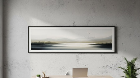 Modern office interior with empty picture on wall. Mock up, 3D Rendering