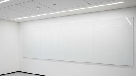 a clean, clear interactive whiteboard against a green wall, created with generative ai