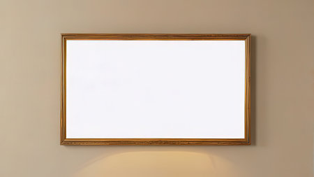 Minimalist interior with an empty picture frame on a pale wall, ready for custom design or promotional content
