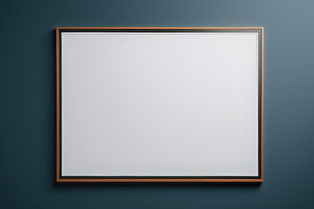 Blank picture frame on blue wall background. 3d render illustration