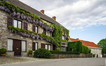 Traditional street view of belgium village. Classical europe houses.