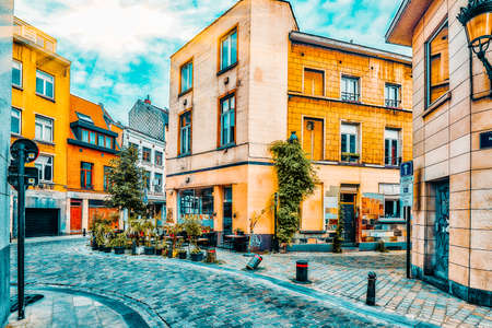 BRUSSELS, BELGIUM - JULY 07, 2016 : City views cozy European cities - Brussels, Belgium and the European Union's capital. On photo streets, cafes, restaurants.