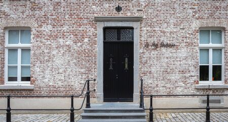Bruges, flanders belgium. August 2019. Approaching the historic center, the medieval aspect emerges: cobbled streets, low red brick houses.