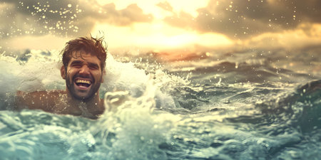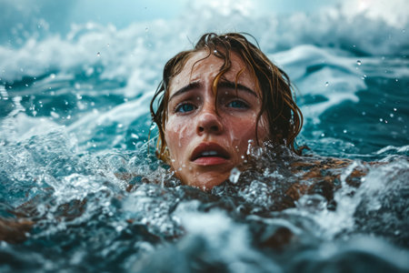 The concept of tragedy takes a poignant form in this image, where a man's scream desperate pierces through the splashing waves as he struggles against drowning in the sea.