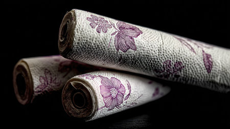 AI Generated. Rolled white paper sheet on a surface with sun shadows