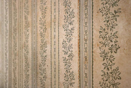 vintage decorative wall paper surface with a floral pattern from aged texture of an old house interior - retro background wallpaper