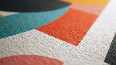 Vibrant geometric shapes on textured paper, modern design close-up.