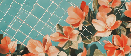 Geometric shapes blend with vibrant floral patterns in minimalist collage art