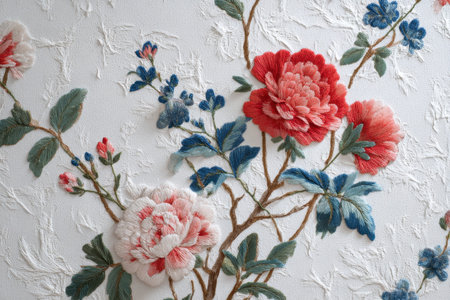 Traditional embroidery design wallpaper featuring floral motifs and intricate details showcasing craftsmanship and design elegance in a beautifully textured setting