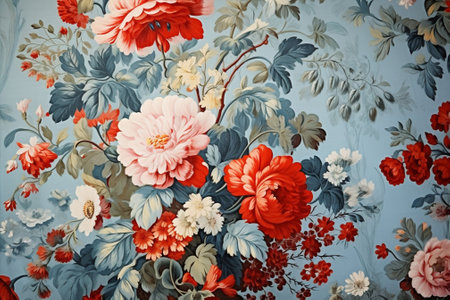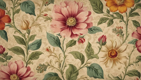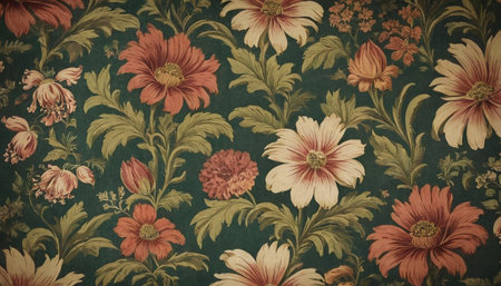 Vintage floral wallpaper background with flowers in retro style, fabric texture