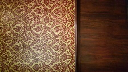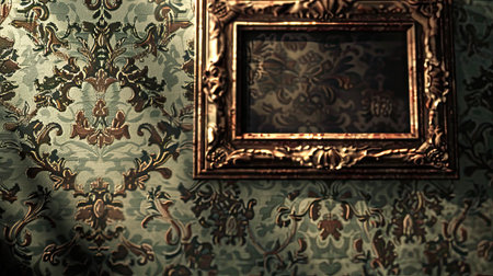 dark interior room with baroque wallpaper and wood