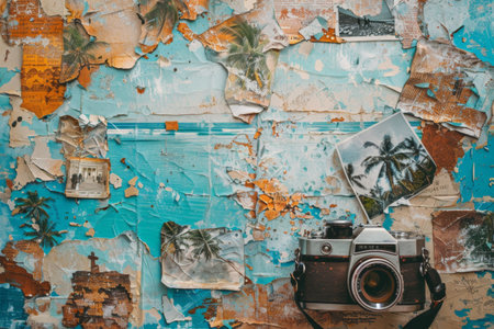 A display of vintage Polaroid photos with vibrant lighting creating a nostalgic and artistic atmosphere, invoking fond memories and creativity