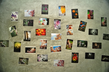 Vintage postcards on a wall in the old town of Tbilisi, Georgia