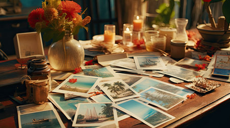 Vintage postcards and stamps collected. - image generated with Generative AI