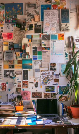 A vibrant collection of text and images arranged in an entertaining format, showcasing creativity and artistic expression in a communal space.