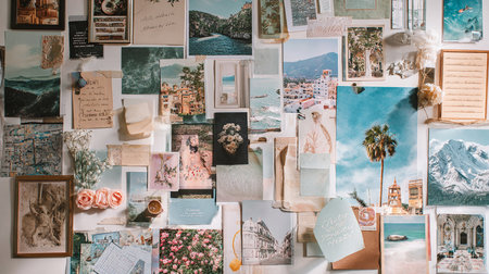 Huge amount of pictures from various locations in a collage. Generative AI illustration
