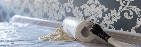Bright room undergoing renovation features a partially used wallpaper roll and brush, capturing the essence of creativity in home decor.