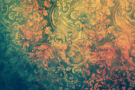 Retro-inspired paisley pattern background with vibrant shades, evoking nostalgia.