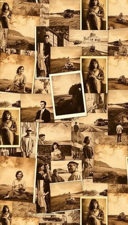 a collage of vintage travel postcards, each with its own story to tell, created with generative ai