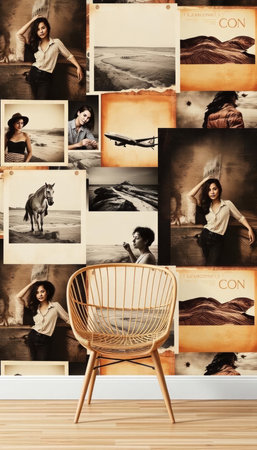 Generative AI : vintage photos on old wall