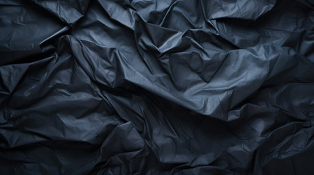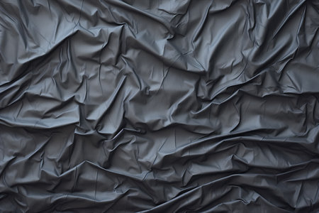 Black wrinkled plastic wrap texture. Crumpled dark thin plastic background. Generative AI.