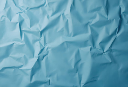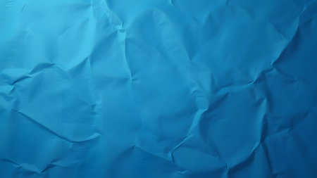 The crumpled blue paper reveals a dynamic texture, showing deep folds and soft shadows. This unique surface creates a visually compelling design perfect for backgrounds.