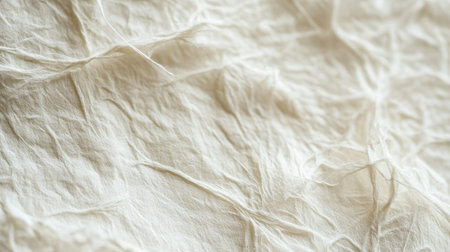 A crumpled silk fabric texture background in soft ivory white. The delicate folds and subtle sheen create a romantic, vintage aesthetic ideal for bridal wear, luxury interiors, and timeless textile designs.