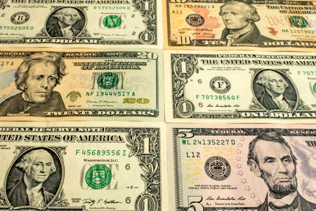 Dollars different bills. Dollars background. Background of different us dollar banknotes. Finance concept.