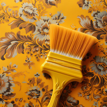 the yellow brush cleaner, with its sturdy bristles and ergonomic handle, is specifically designed for effective removal of dirt and grime from wallpaper, leaving surfaces looking fresh and revitalized, perfect for diy home decor and renovation projects. ai generated