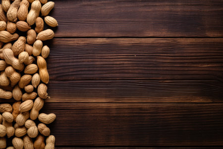 Minimal Style Peanuts on Rustic Wooden Background AI Generated