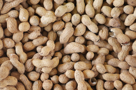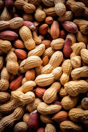 Realistic photo of a bunch of peanuts. top view nuts scenery