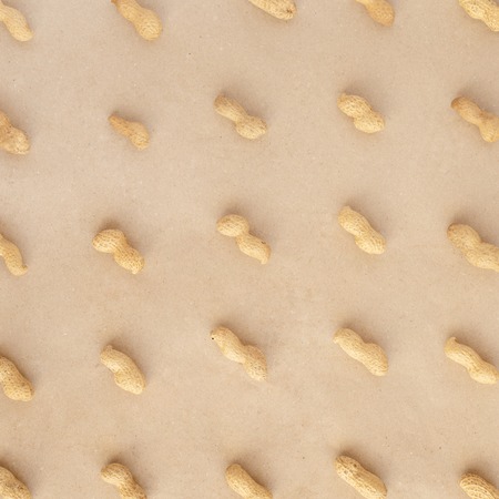 Pattern of peanuts on a background. Flat lay. Comparison of open and closed.