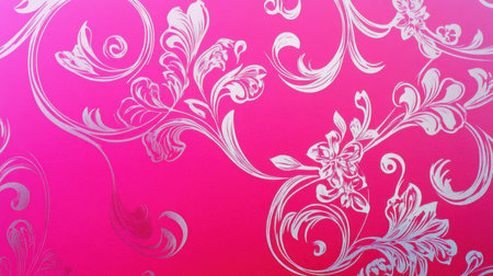 This image features an elegant floral design with intricate swirls against a vibrant pink background, perfect for decorative projects and modern aesthetics.