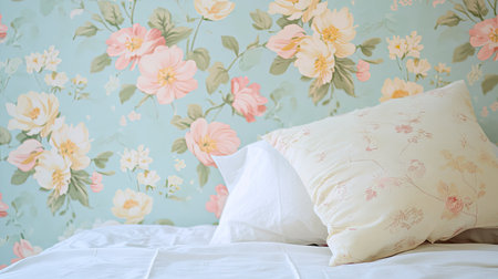 Vintage floral wallpaper in soft pastel tones, adding a nostalgic touch to a bedroom or lounge.