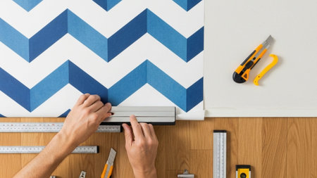 A 90-degree top-down aerial view emphasizing the geometric precision of applying removable chevron w