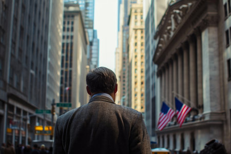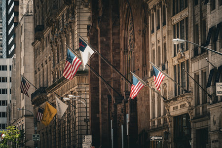USA Flags on Wall Street at the New York Stock Exchange NYSE, New York