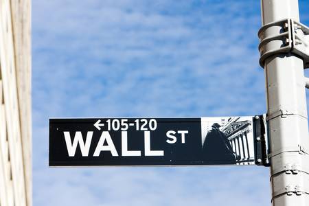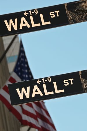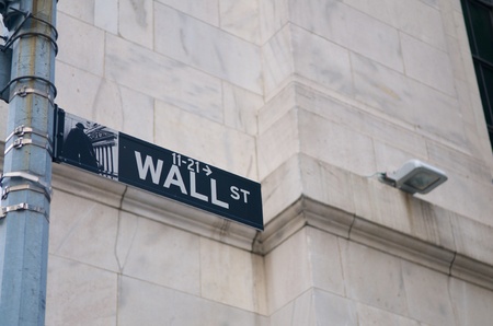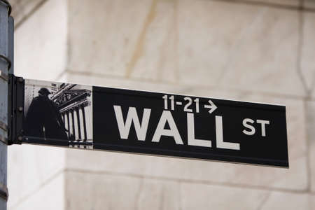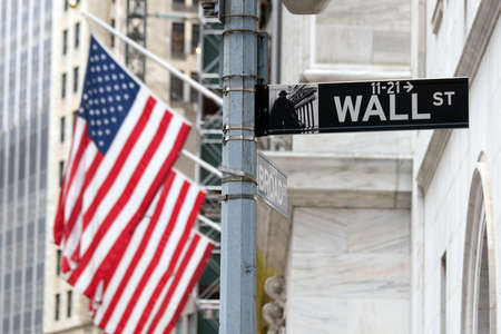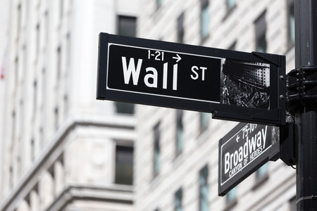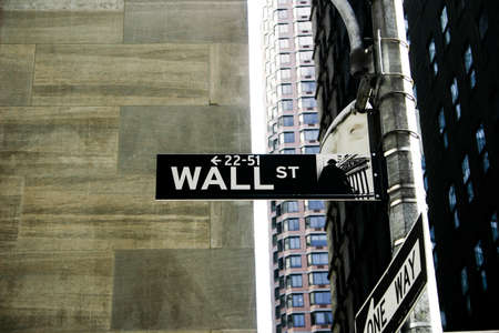 Wall St. street sign in lower Manhattan, New York City, USA.