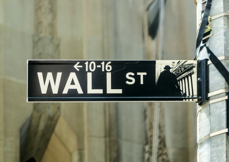 New York, USA - October 5, 2014: Wall Street street sign on the pole in New York. Wall Street is 0.7 miles long street which gave its name to the the financial district of New York City.