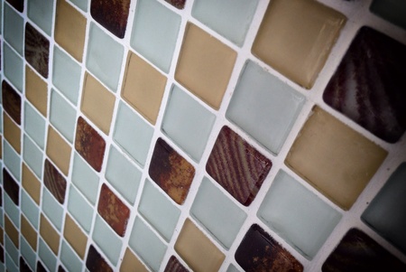 Ceramic tiles from multi-colored squares for the decor of kitchens and bathrooms.