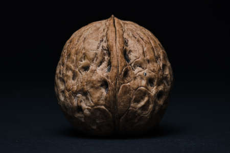 close-up black background raw delicious peeled shelled fresh walnut kernel studio concept