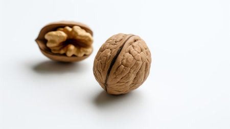 AI Generated. Two walnut halves showcasing front and back views with contrasting textures