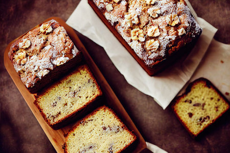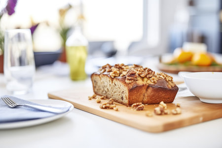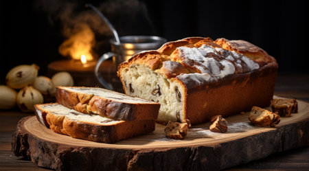 AI Generated. Sliced loaf of homemade bread with walnuts on a table